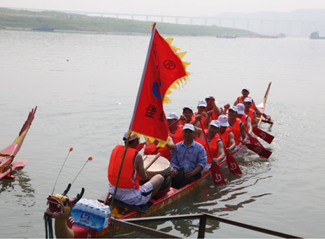 6月22日,中國(guó)·鄖縣第四屆調(diào)水源頭龍舟節(jié)在鄖陽漢江大橋南岸橋頭隆重開幕。我公司組建的龍舟隊(duì)在隊(duì)員們半個(gè)月的艱苦訓(xùn)練下,順利通過初賽并進(jìn)入決賽。決賽當(dāng)天我公司龍舟隊(duì)在江上擂鼓運(yùn)漿,奮力飛馳,激起白浪翻騰,聚集于江岸的萬千觀眾激起一陣又一陣的助威加油聲浪,經(jīng)過數(shù)輪激烈角逐我公司龍舟隊(duì)在18支參賽龍舟隊(duì)中脫穎而出,最終獲“道德風(fēng)尚”榮譽(yù)稱號(hào)。
