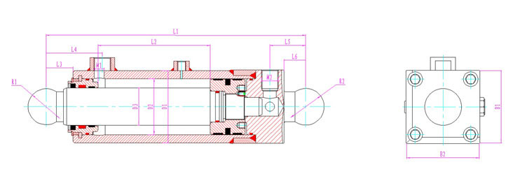 | 產(chǎn)品型號(hào) | 行程 | 安裝距 | 額定壓力 | L1 | L2 | L3 | L4 | L5 | L6 | D1 | D2 | D3 | R1 | R2 | B1 | B2 | M1 | M2 |